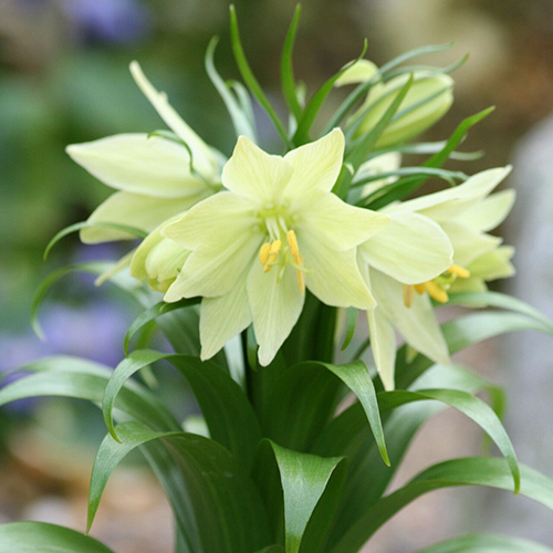 Award winning (Siberian Fritillary) boasts up to 5-6 nodding, pale buttery-yellow blooms, 2.5” long and usually checkered brownish-red within. The delicate blooms are complimented by broadly lance-shaped bluish leaves on slender stems. This lovely Central Asian species has proven to be a reliable garden plant that’s at home in naturalistic settings like a woodland garden, but also does well in full sun. 16-28”.